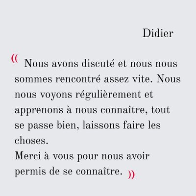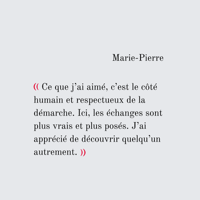 Pour celles et ceux qui recherchent une relation vraie, authentique, qui ont envie de rencontrer quelqu’un avec qui construire dans la durée et qui n’osent peut-être pas, ou plus, franchir le pas d’un site de rencontre par déception ou crainte.