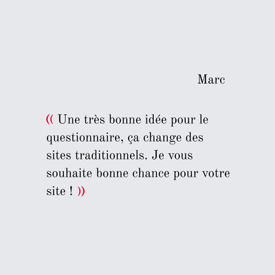 Une fois le questionnaire rempli, vous entrez directement dans la base de données d’OldFashiond et également dans la boucle permettant d’obtenir un match.
