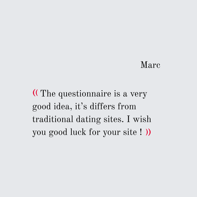 - Fill out the questionnaire carefully and honestly, essential for defining your search criteria (5 themes : Personal, Lifestyle, Interests, Values, Relationship).